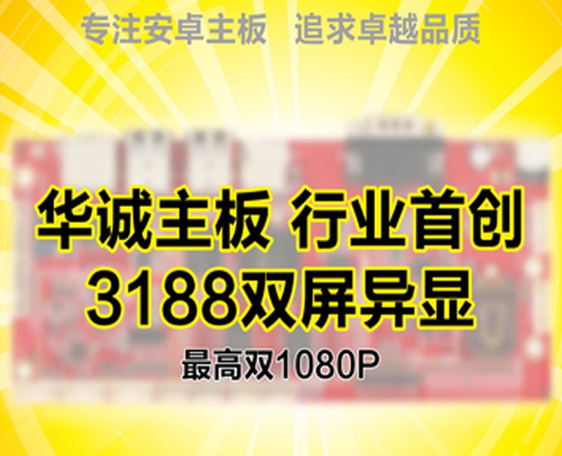 了解更多 >华诚主板,行业首创!成本降维,商显福音! 2017年9月,在华诚的不懈努力下,实现了RK3188双屏异显的重大突破!而这一突破,是在行业里的首次创举。主要硬件指标CPURK3188四核Cortex-A9 主频1.6Hz内存DDR3 1G/2G 可选内置存储器EMMC FLASH 8GB/16G/32G ...